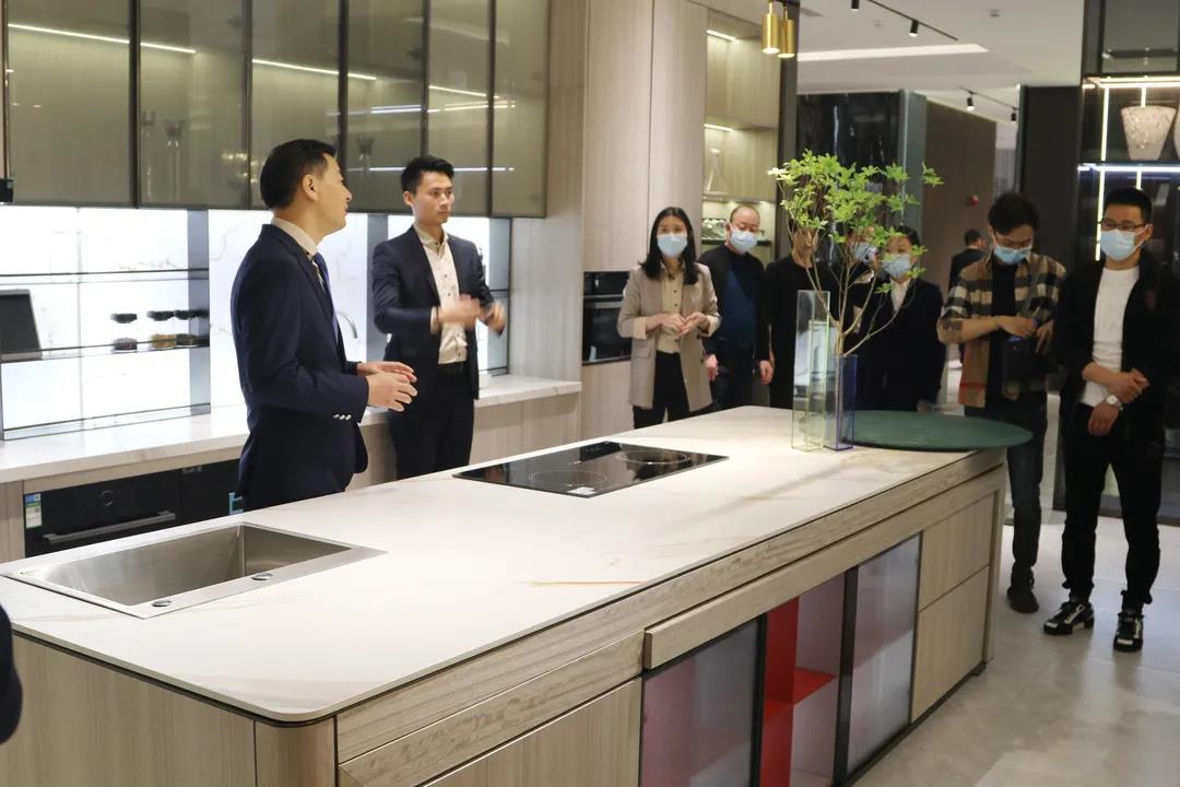 随后,嘉宾们迫不及待地移步至位于集团营销中心三楼的新品牌【西瑞】展厅。在潮味十足的展厅内,集团营销总经理陈玉伟先生围绕着新时代下家居行业的发展趋势,对西瑞产品架构和矩阵进行了深度解析,并为嘉宾们全方位介绍了西瑞的产品定位,材质工艺,以及“整装定制·全案设计”的发展方向。全新的设计视角、个性十足的产品设计引来了现场嘉宾们的驻足品鉴。系列产品的“时尚新锐”、“潮流大气”、“高级质感”、以及极具新青年格调的定制空间赢得了现场嘉宾的由衷赞誉和高度认可。